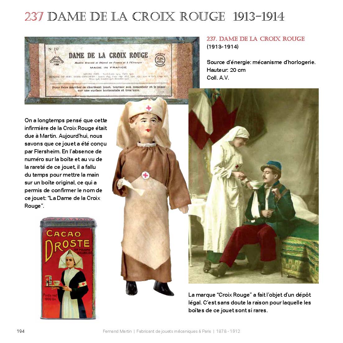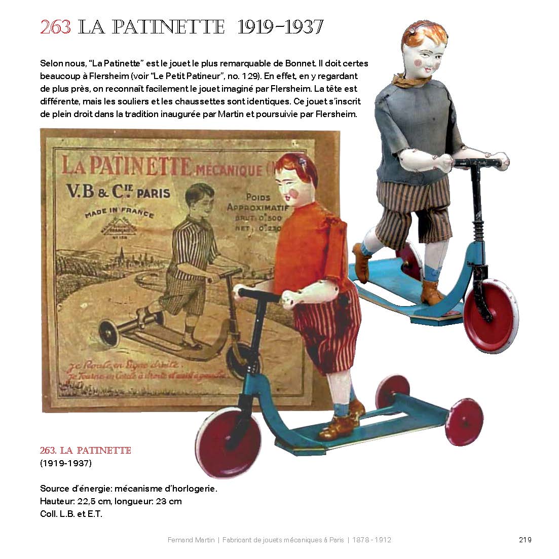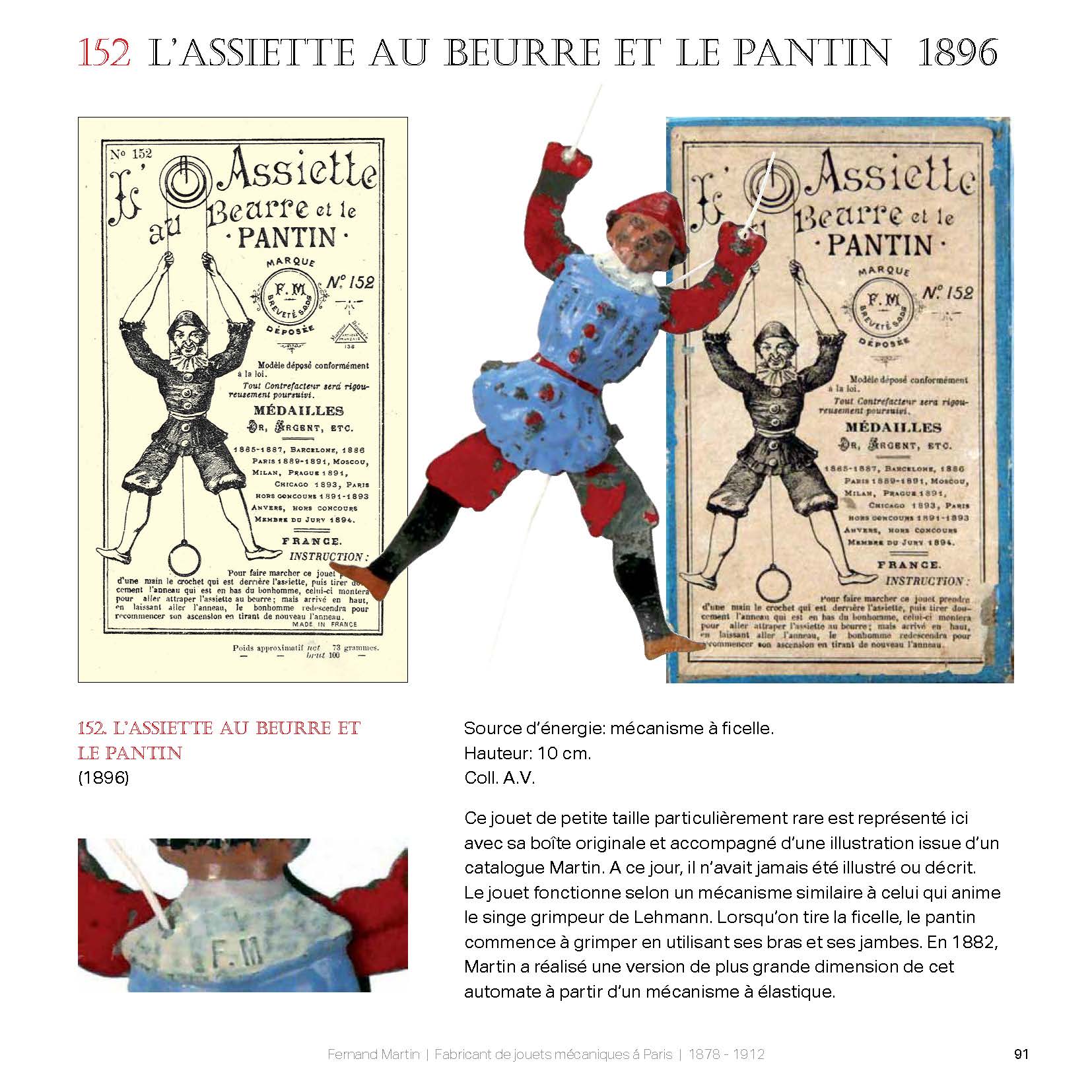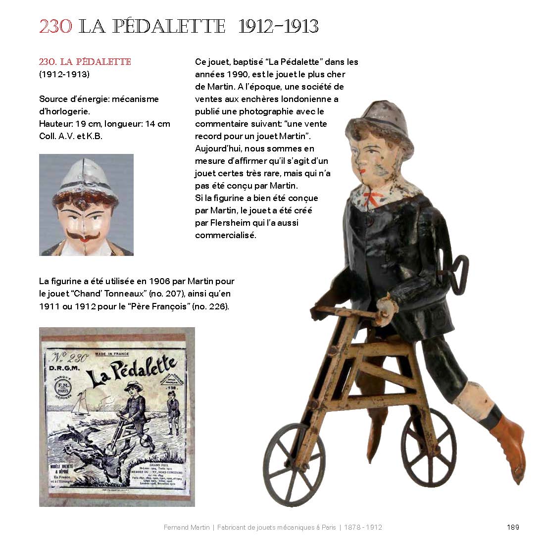 ‘Fernand Martin a conçu et fabriqué la collection des célèbres “Bonshommes Martin”. Inventeur très créatif, il était aussi un observateur attentif de son époque doublé d’un fin psychologue. Ses jouets sont les témoins fidèles d’une époque. Les historiens qui souhaitent faire la chronique de la vie quotidienne à Paris au début du XXe siècle ne manqueront pas de faire référence aux objets conservés dans les collections particulières ou dans les