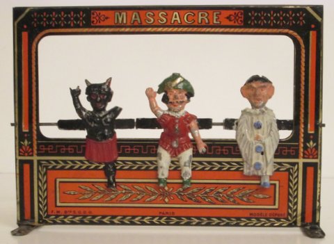 Two years after our publication of ‘Fernand Martin, toymaker in Paris’ we, Arthur Verdoorn and Lourens Bas, were very happy and surprised to read an article in The Antique Toy World of December 2016. Renaud Fournier described the discovering of ‘Le Jeu de Massacre’. It is marked in the lower right as well as the lower left (F.M.) We already had a reference in our book at page 45 (number 16) but a picture was not available until recently! With the help and permission of Renaud Fournier we are able to share this with you.